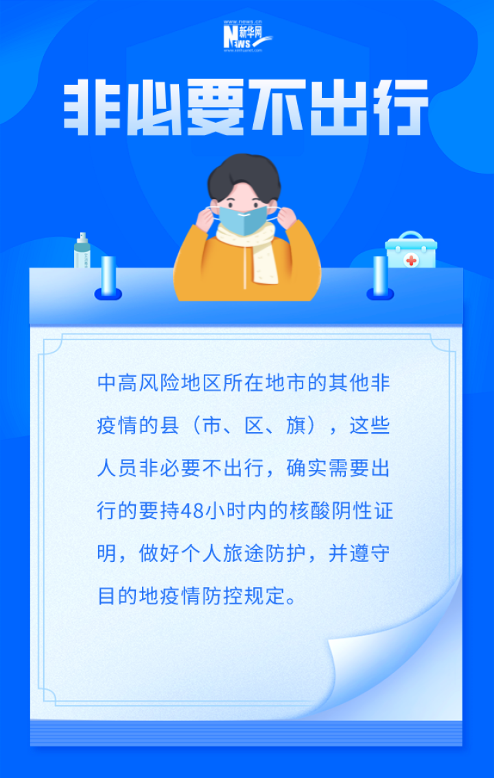 贺青华也提醒广大群众,在返程出行前,既要关注目的地疫情防控规定,提前做好核酸检测等准备工作,旅途中要做好个人防护。同时,要加强个人健康监测,如果有发热、咳嗽等感冒症状,应当暂时中止返程或者出行计划,避免旅途劳累导致症状加重,并及时就医,待康复后再安排出行。