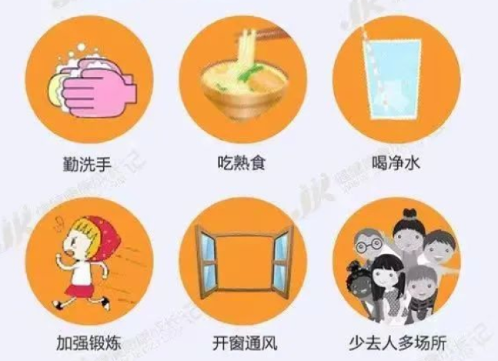 一 手足口病 (2) 不要与他人共用毛巾或个人物品。 (3) 经常清洁和消毒常接触的物品表面,如家具、玩具等。 (4) 被粪便污染的蔬菜、水果、肉类上会含有肠道病毒,水果一定要清洗干净,最好去皮后再吃;不要给孩子吃生的蔬菜;不要吃没有完全做熟的肉食。 (5) 避免与手足口病患者接吻、拥抱等密切接触。 (6) 为防止将病毒传染给别人,患病儿童应居家隔离至康复后一周。 (7) 大人也会感染肠道病毒,多是无症状感染,但是有传染性,病毒在大人呼吸道、手上存留着,所以大人外出回家后,一定要洗脸、洗手后再接触孩子。 (8) 我国自主研发上市的EV71疫苗可有效预防EV71相关手足口病发病、重症和死亡,对CV-A16等其他肠道病毒无交叉保护。接种EV71疫苗的适龄儿童为6月龄-5岁,建议尽早接种,低龄儿童尽量在12月龄前完成2剂次接种程序。 (9) 注意孩子的饮食、睡眠,适当锻炼、增强免疫力。 二 疱疹性咽峡炎 该病的治疗以对症治疗为主,可口腔局部喷涂抗病毒药物进行治疗,以缓解口痛症状。重症可以住院输液等综合治疗。患儿应尽量待在家中,减少不必要的外出,最好是在体温正常、疱疹消退后再隔离一周,一般来说,共隔离2周时间,和手足口病的法定隔离时间是一样的,尤其是在发病的第一周内,传染性是最强的。同时家长也尽量少串门,因为家长也可能会成疱疹性咽峡炎的传播媒介。 预防疱疹性咽峡炎应从以下几个方面着手: 三 疱疹性咽峡炎与手足口病