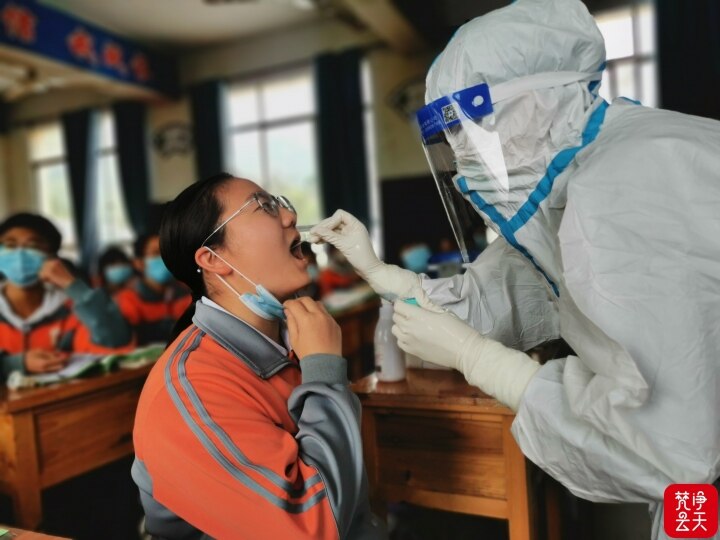 本次核酸检测按照“应检尽检、不漏一人”原则,对石阡县各级各类学校(含中、小学、幼儿园与托幼机构、中等职校技术学校)在校教师、学生、行政、后勤等人员进行全覆盖核酸采样检测。