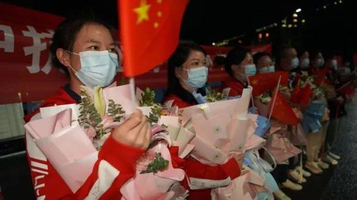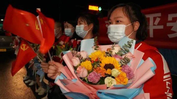 “我们援沪医务人员是零感染回来,现在上海已经开始复工复产,东方明珠的灯亮了,我们回家了!”援沪医务人员冉钗说。