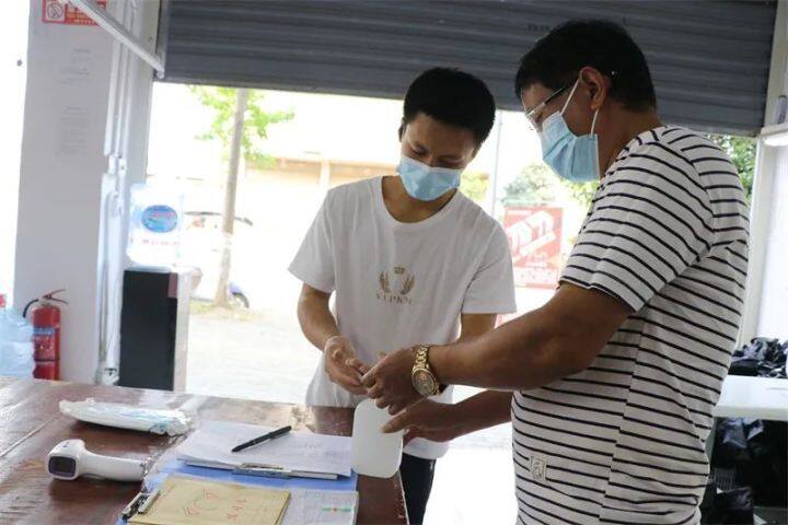 出示"三码"、体温监测……在街上村移民安置点内的贵州祥鸿服饰有限公司扶贫车间里,每位工人都需先完成疫情防控措施后,才能进到车间工作。
