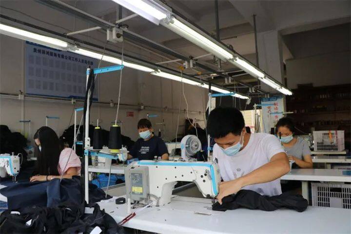 贵州祥鸿服饰有限公司扶贫车间组长杨开成介绍说:"现正在赶制的是福建出口订单,车间里的订单量是充足的,已经排到了年底。为了保证车间生产工作的有序进行,我们车间都是严格按照疫情防控相关工作开展的,做到防疫生产两不误。"