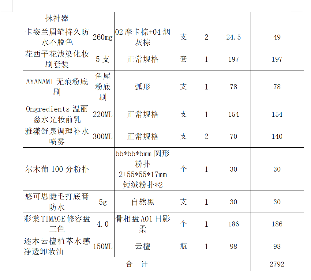 2. 产品品牌、规格、型号、色号必须与上表所列完全一致,不得以任何近似产品替代。